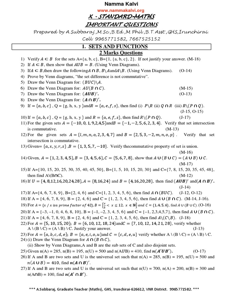 Namma Kalvi 10th Maths Public Exam 2012 2018 Repeated Questions Em Pdf